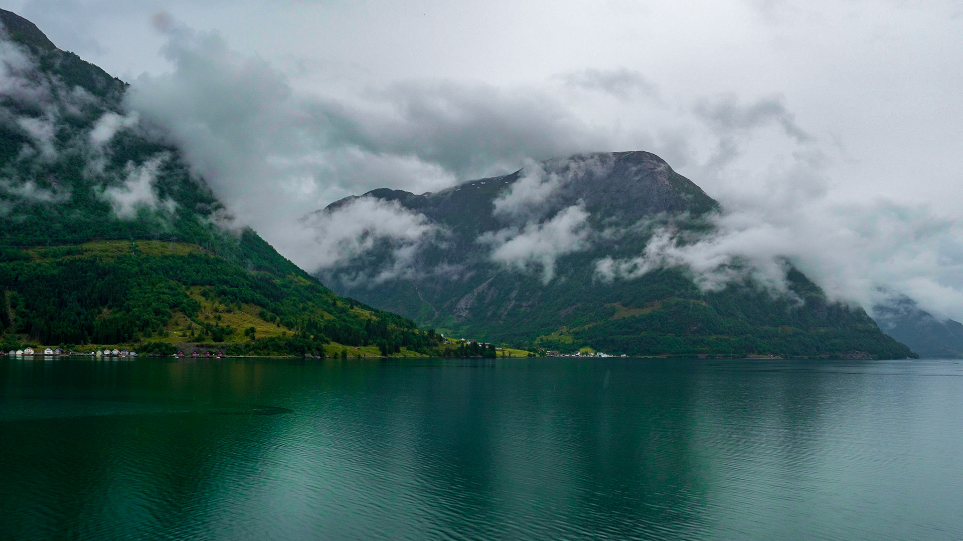 A typical Norway picture of the Innvikfjorden in June during a light drizzle