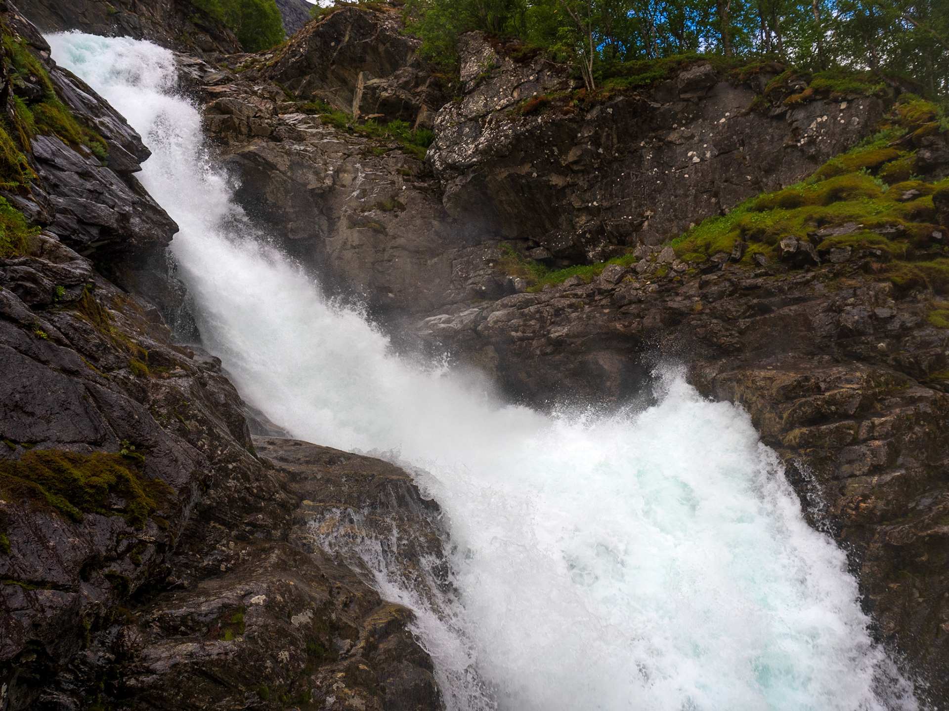 My last picture of Nyastølfossen. One comes really close - so close that one can feel the spray. June 2018